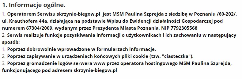 2. Serwis może zapisać ponadto informacje o parametrach połączenia (oznaczenie czasu, adres IP)